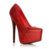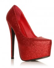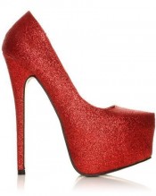 DONNA Red Glitter Stilleto Very High Heel Platform Court Shoes Size UK 4 EU 37