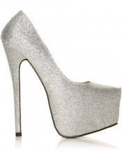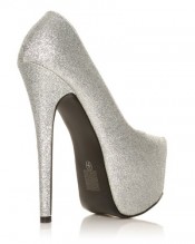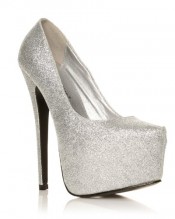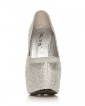 DONNA Silver Glitter Stiletto Very High Heel Platform Court Shoes Size UK 6 EU 39