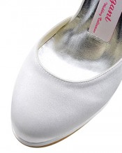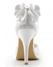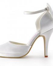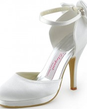 Elegantpark AJ091-PF White Women Closed Toe Ankle Strap Bow Platform Satin Women’s Wedding Shoes UK 5