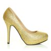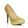 EVE Gold Glitter Stiletto High Heel Platform Court Shoes Size UK 5 EU 38