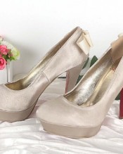 Fabulous Satin 4.5 Inches High Heel Platform Bow Bridal Shoes in Champagne – SHOF888-1-4.5/CHAMPAGNE