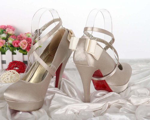 Fabulous Satin 4.5 Inches High Heel Platform Bow Bridal Shoes in Champagne – SHOF888-1-4.5/CHAMPAGNE