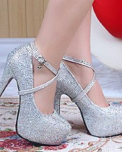 Fabulous Sparkling 4.5 Inches High Heel Platform Wedding Party Shoes UK NEXT DAY DELIVERY(UK5.5,Silver)