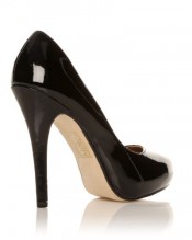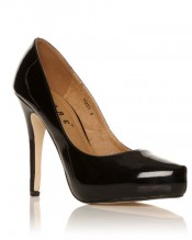 H251 Black Patent PU Leather Stiletto High Heel Concealed Platform Court Shoes Size UK 6 EU 39