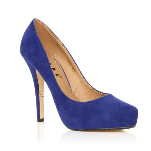 H251 Blue Faux Suede Stiletto High Heel Concealed Platform Court Shoes Size UK 4 EU 37