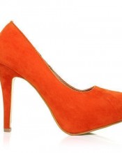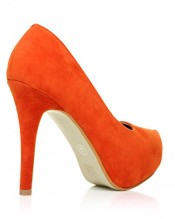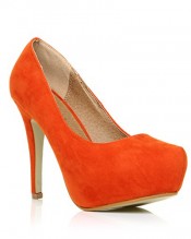 H251 Orange Faux Suede Stiletto High Heel Concealed Platform Court Shoes Size UK 5 EU 38