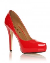 H251 Red Patent PU Leather Stiletto High Heel Concealed Platform Court Shoes Size UK 5 EU 38