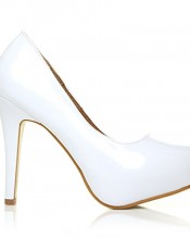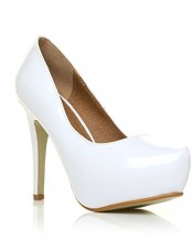 H251 White Patent PU Leather Stiletto High Heel Concealed Platform Court Shoes Size UK 6 EU 39