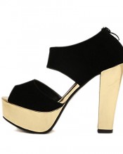 Instyleshoes Women PU Peep Toe Thick Platform Chunky High Heels Sandals Shoes37Golden