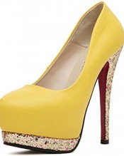 Instyleshoes Women PU Shining Edge Round Toe High Heels Pump Stiletto Shoes 39 Yellow