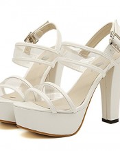 Instyleshoes Women PU Transparent Leather Open Toe High Heels Sandal Shoes35White