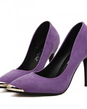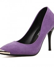 Instyleshoes Women Suede Metal Pointed Toe High Heels Stiletto Pumps Work Shoes 37 Purple