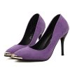 Instyleshoes Women Suede Metal Pointed Toe High Heels Stiletto Pumps Work Shoes 37 Purple