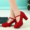 Instyleshoes Women Suede Round Toe High Chunky Heels T-Bar Retro Pump Shoes 36 Red