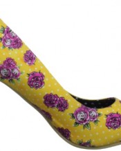 These pretty yellow heels feature an all over polka dot and floral Scary Prarie print. These are the perfect summer court shoes 100% Man Made 4rdquo; Heel
