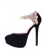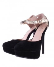 An gorgeous pair of Statement Platform Peep Toe Stiletto Heels from Fashion Brand, BEBO. A Black suedette pair with ankle strap fastening that will make your legs go on and on forever. We just love em! Dare to wear these stunning heels at your Prom or party this season