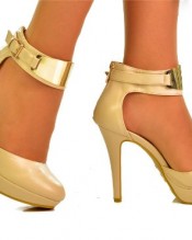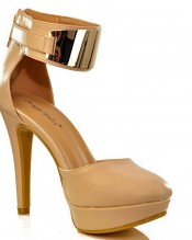 Ladies Beige Plain Metal Gold Ankle Strap High Heel Sandals