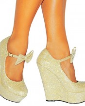 Ladies Gold Sparkly Metallic High Heels Wedges Glitter Wedged Bow Detail Shoes Platforms (UK6/EURO39)