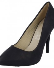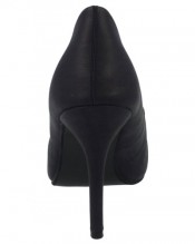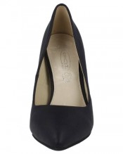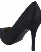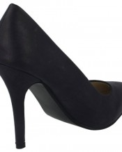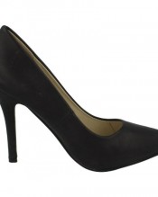 Ladies pointed toe synthetic leather look court shoe with a cushioned synthetic lining and a 4″ stiletto heel.