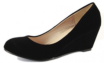 Ladies Wedge Shoes Smart Pumps Wedges High Heel Classic Court Platform Size With Shoefashionista Boutique Bag (Black Faux Suede) (6 UK / 39 EU)