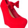 Ladies Womens Bright Red Bow Detail High Heels Platforms Wedges Shoes Court Ankle Strap 3-8 (UK6/EURO39)