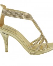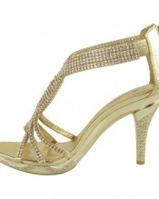 LADIES WOMENS DIAMANTE HIGH HEEL PROM WEDDING BRIDAL BRIDESMAID PARTY SHOES SIZE (UK 3, Gold Metallic)