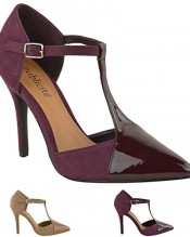 LADIES WOMENS HIGH HEEL POINT TOE STILETTO SANDALS ANKLE STRAP COURT SHOES SIZE (UK 7, Plum Suede Patent)
