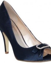 Ladies Womens Ivory Navy Blue Medium High Heel Satin Peep Toe Wedding Party Evening Court Shoes (3, Navy blue)