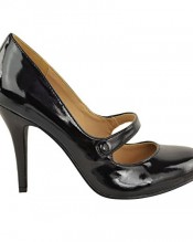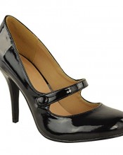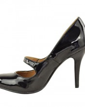 LADIES WOMENS LOW MID HIGH HEEL ANKLE STRAP COURT SHOES WORK PUMPS SANDALS SIZE (UK 7, Black Patent)