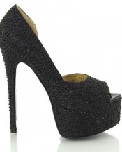 LADIES CUT OUT GLITTER FULLY COVERED IN RHINESTONES HIGH HEEL PEEP TOE