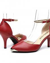 Lemontree Women’s Summer High Heel Pointed-Toe Leather Court Shoes With Ankle Strap (38, Red)