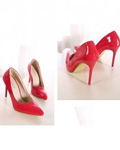 MeDesign Office Lady Party Clubbing Patent Leather Stilettos High Heel Pointy Pumps Fashion Shoes (7 UK, Red)