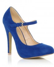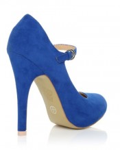 MISCHA Electric Blue Faux Suede Stiletto Very High Heel Mary Janes Shoes Size UK 4 EU 37