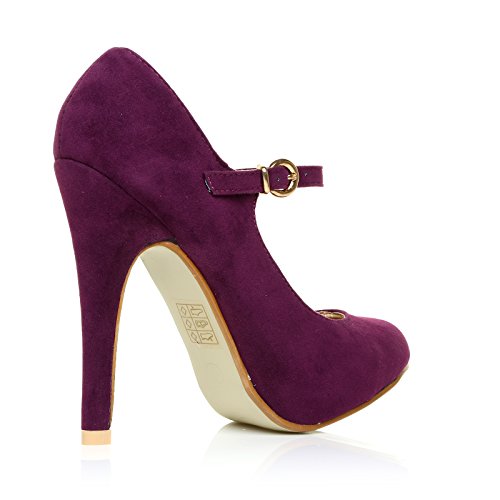 MISCHA Purple Faux Suede Stiletto Very High Heel Mary Janes Shoes Size UK 6 EU 39