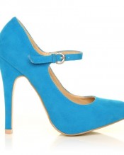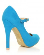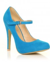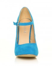 MISCHA Turquoise Faux Suede Stiletto Very High Heel Mary Janes Shoes Size UK 8 EU 41