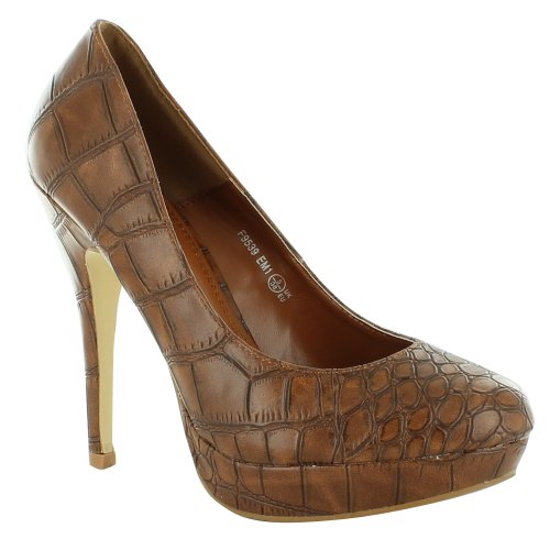New Ladies Black Stiletto High Heel Platform Classic Court Shoes Size UK 3 4 5 6 8, Tan Size UK 7