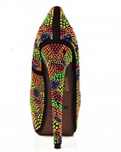 Spirals of swirly molten gold rivulets weave through and around the exciting colours and decorations that stretch all across and around the beautifully designed shoes. Pamper yourself and your wardrobe with a plathora of colours that would make a rubik cube jealous and revel in the magnificent comfort offered by the high platform and gentle materials.