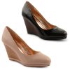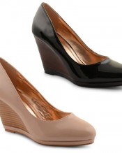Go for a classic look with these stylish, smart court shoes – wear with a pencil skirt and blouse for a sophisticated office look. The shoes have a high wedge heel, slip on design and are available in two different colours.