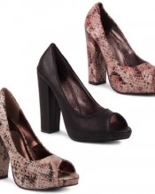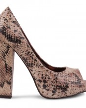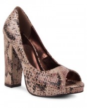 These stylish ladies court shoes feature a peep toe design and a high block heel. The shoes are ideal for work and look great as part of your daily office outfit! Available in a choice of Black or two different faux Snakeskin colours.