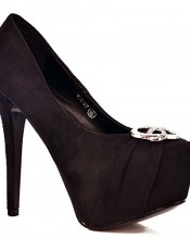 NEW Ladies Silver Buckle Faux Suede Platform Super High Heel Shoes Pumps Size[UK 5 / EU 38 / US 7 / AU 6,Plain, Classy,