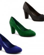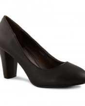 These classic, simple court shoes come in three different colours and look great as part of your daily work outfit and as evening wear too. Featuring a thick block heel and slip on design.