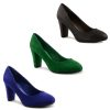These classic, simple court shoes come in three different colours and look great as part of your daily work outfit and as evening wear too. Featuring a thick block heel and slip on design.