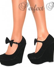 Perfect Me LADIES MARY JANE BOW HIGH WEDGE HEELS SHOE PLATFORM STRAPPY SUMMER SANDAL SIZE