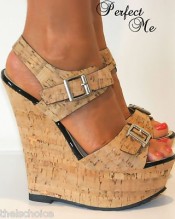 Perfect Me LADIES NUDE CORK WEDGE PLATFORM HIGH HEEL PEEP TOE STRAPPY SHOE SANDAL BUCKLE