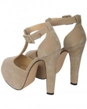 An open toe suede look high heel shoe is what everyone requires for their wardrobe collection this season, and this one is no exception, featuring a high heel and t bar buckle fastening. A great addition to any party wear outfit, team with a little black dress, add statement jewellery and a glitzy clutch bag and you are ready to party!