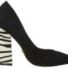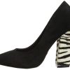 A fresh new style to the Ravel range the Oklahoma slip on court shoe adds another dimension to your styled outfit! With a choice of Black or Wine, with a Zebra or Leopard print wide heel. This suede leather upper court shoe has a 11cm heel and a pointed toe.