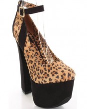 Shoehorne Anne51 – Womens Black Leopard Print Faux Suede Double Platform Chunky Block Heeled High Heel Court Shoes w/ ankle strap- Ladies UK Size 3-8
