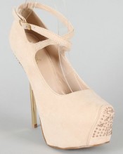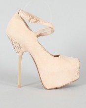 Shoehorne Treasure-06 – Womens Sexy Neige Nude Jeweled Toe Crisscross Metal Spike High Heel Platform Shoes – Ladies Shoe Size 8