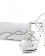 SHOEZY Sexy Women Silver Rhinestone Party High Heel Platform Shoes Matching Satin Handbag Clutch