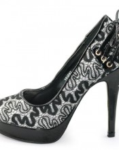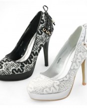 New arrivals designer silver / black lace and glitter upper platform high heels shoes.